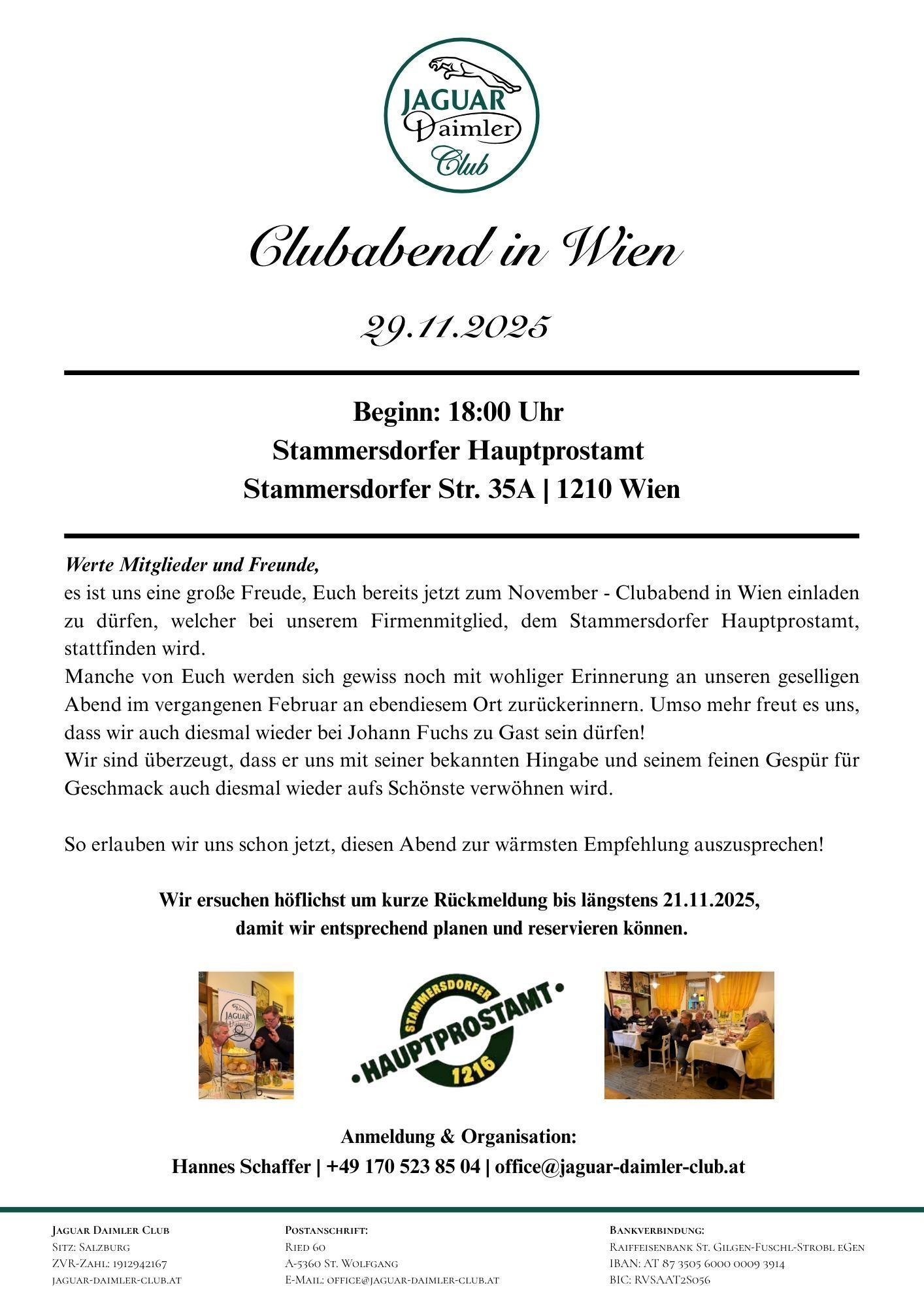 Der Vorstand des Jaguar Daimler Clubs freut sich auf Ihr Kommen