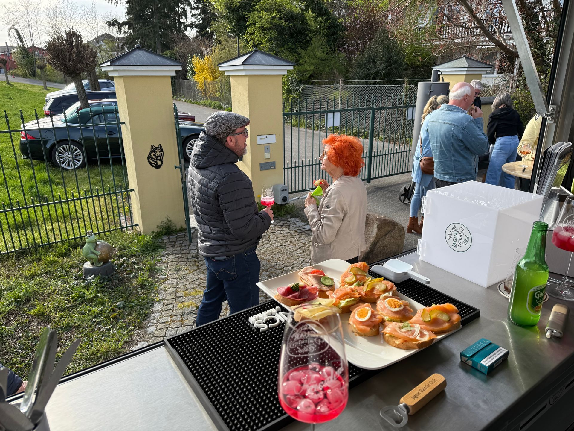 Zur Stärkung wurden vorab kleine, geschmackvolle Happen gereicht, welche nicht nur den ersten Hunger milderten, sondern auch als kulinarisches Versprechen für das Kommende verstanden werden durften. Später dann war es Angela, die am Grill stand und mit großer Umsicht und einem sicheren Gespür für das rechte Maß herrlich duftende Käsekrainer zubereitete.