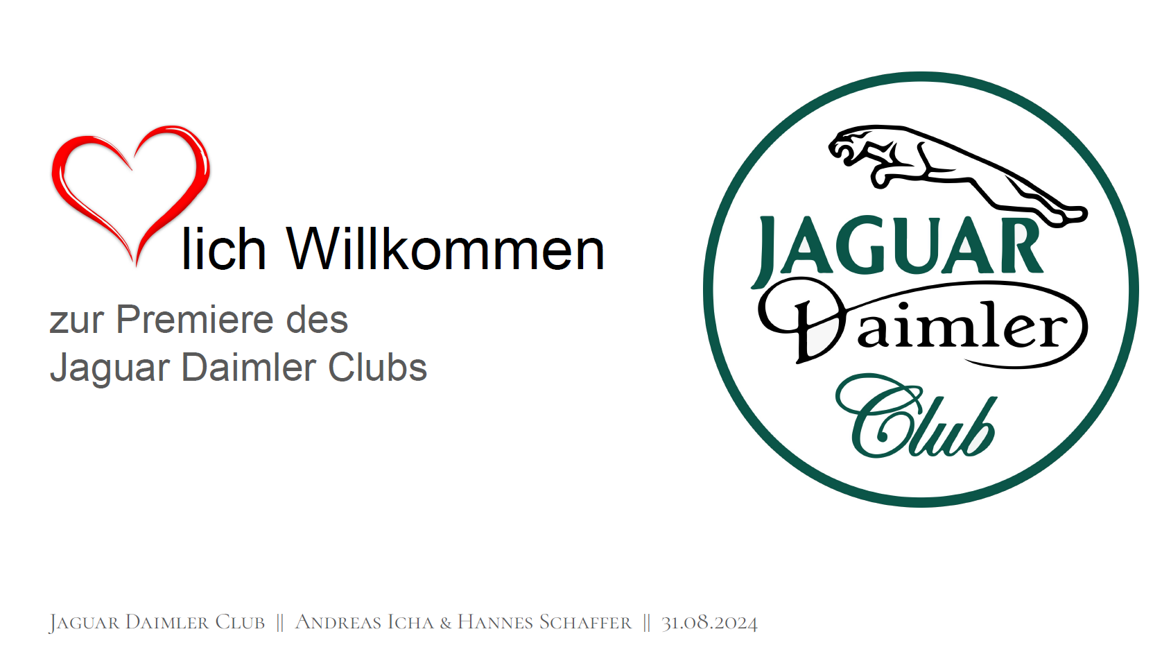 Hannes stellte das Kernteam des Clubs vor und sprach seinen Dank für die bereits zu Beginn gebotene Unterstützung aller Beteiligten aus. Nachdem Andi die Kooperationen mit dem Jaguar Drivers' Club (JDC) und dem Österreichischen Motor Veteranen Verbands (ÖMVV) hervorhob präsentierte Hannes die Firmenmitglieder, die den Jaguar Daimler Club von der ersten Stunde an tatkräftig unterstützen. Wir freuten uns sehr, dass von Raiffeisen Vertreter des Private Banking Wolfgangsee einige Worte zu den Teilnehmern richteten und dass Martin Sedlmaier, Inhaber von Profitek, seine Beweggründe für seine Unterstützung darlegte. Andreas Oberndorfer (Württembergische Versicherung) und Hans Fuchs (Stammersdorfer Hauptprostamt) ließen Grüße ausrichten und wünschten allen eine erfolgreiche Veranstaltung.