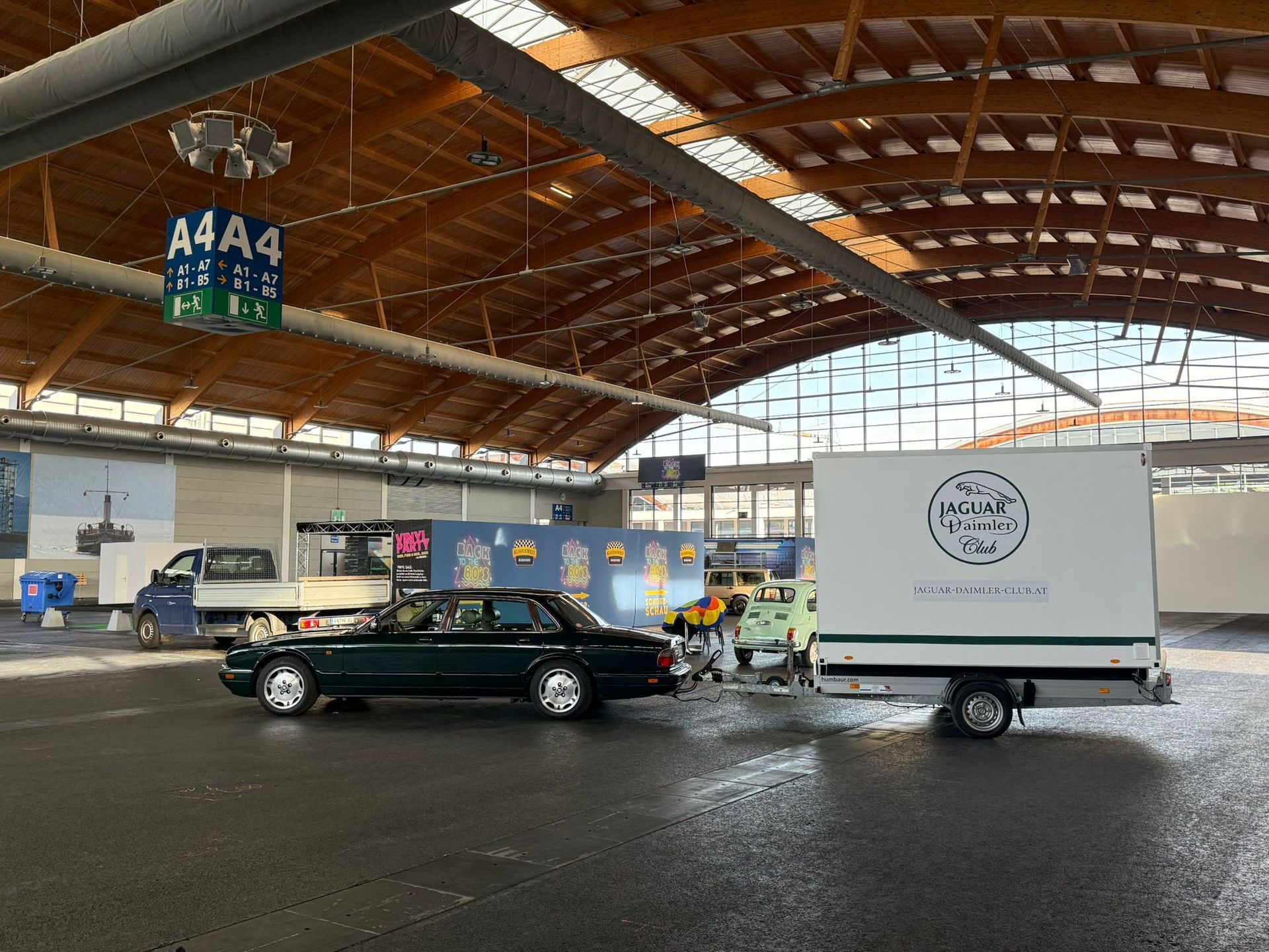 Unser Freund, Stefan Oberhuber ‘Ihr Auto-Concierge’ (stefanoberhuber.com), stellte uns seinen wunderschönen, weißen Jaguar XJ-SC mit dunkel-blauem Interieur für unseren Messestand zur Verfügung.