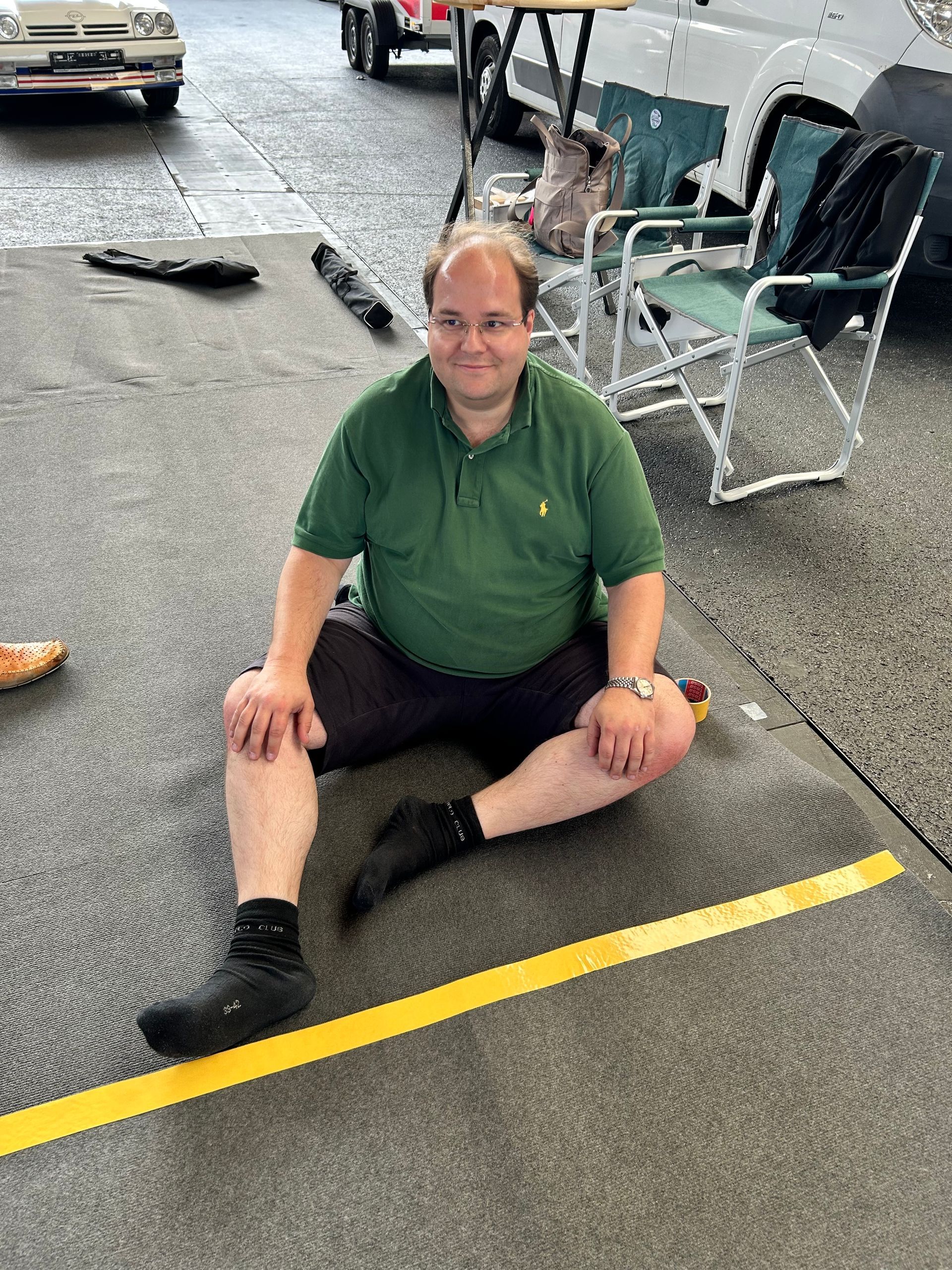 Bevor das Gespann bei der Messe Friedrichshafen eintraf, musste es noch einer groben Beauty-Session unterzogen werden. Daimler und Anhänger erfreuten sich der Hochdruck-Dusche und fühlten sich wie neugeboren - bei Hannes hingegen zeigten sich erste leichte Ermüdungserscheinungen.
