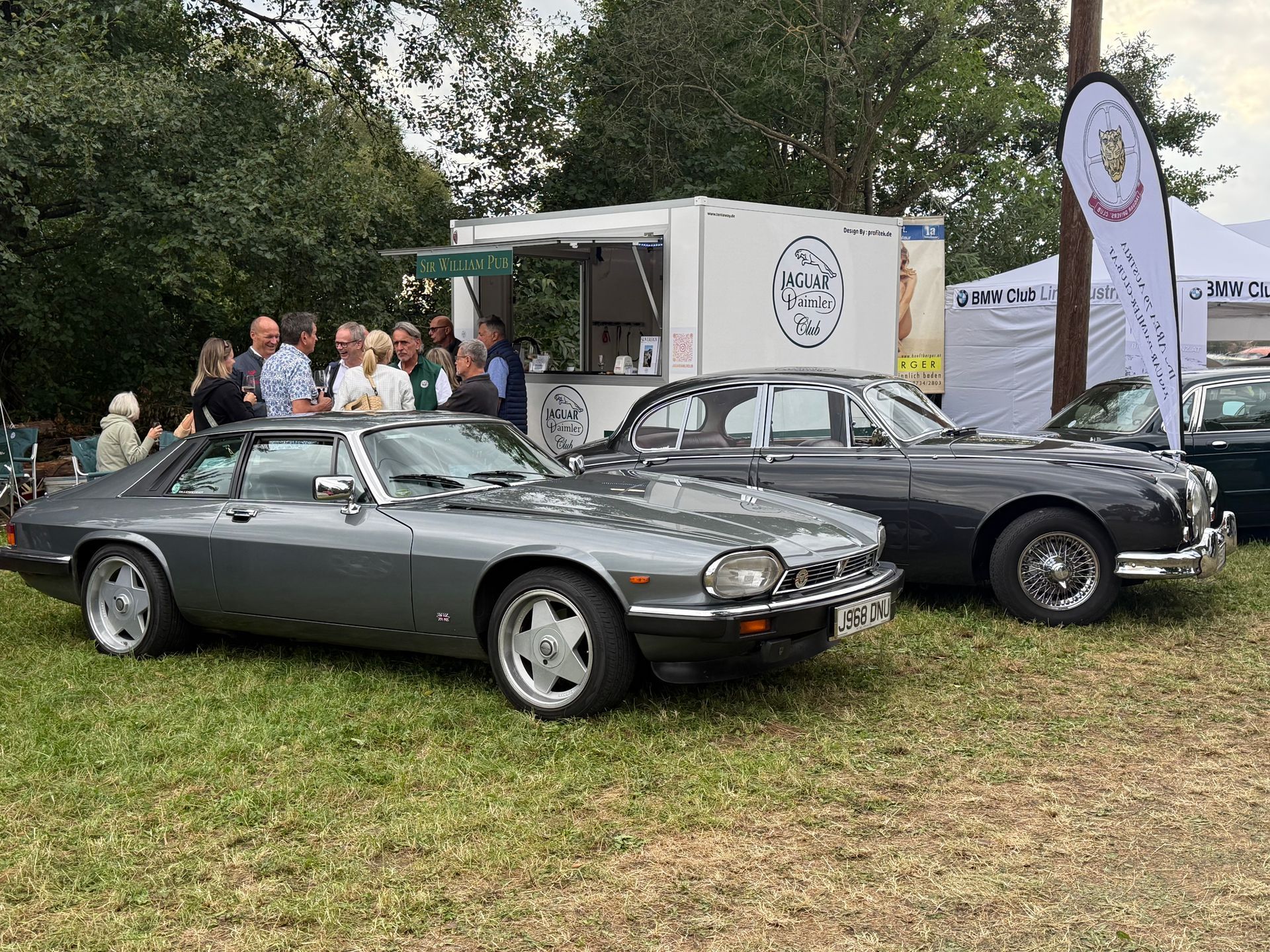 Bereits am Freitag Vormittag traf ich mit unserem Sir William Pub ein und begann sogleich mit dem Aufbau. Seite an Seite mit dem Jaguarclub Austria, wo Gudrun Hütter und Bernhard Ziegler das Zelt betreuten, konnten wir unsere Clubs repräsentativ zur Schau stellen. Schon bald fanden sich die ersten Mitglieder ein, die Sonne strahlte über dem Pfarrhofgarten, und die ersten geselligen Gespräche waren rasch begründet.