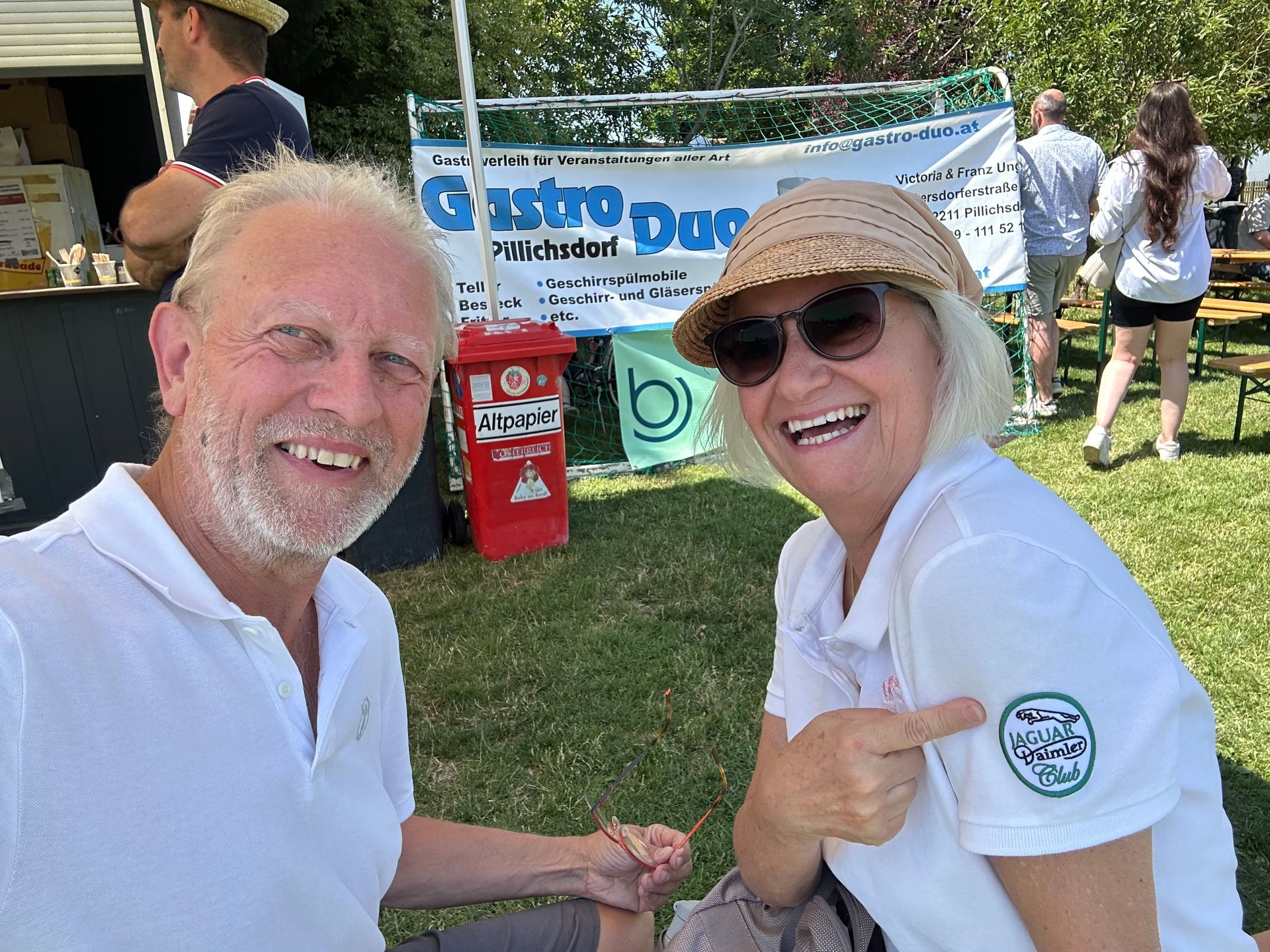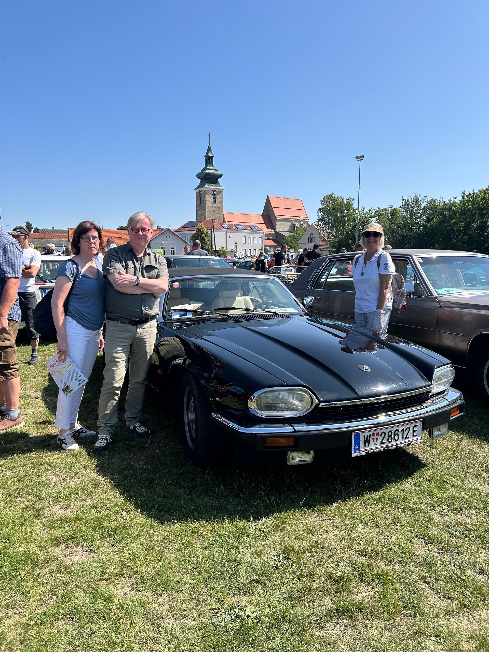 Der Jaguar Daimler Club war mit insgesamt vier Fahrzeugen vertreten. Andi & Eva führten den Daimler V8 auf die grüne Wiese, Günther & Karin erschienen mit einem Jaguar XJ-S Convertible, Pepi, Gaby & Branco schnurrten mit einem Jaguar XJ6 zum Treffen und Hans tuckerte mit seiner Ape Calessino nach Pillichsdorf - nicht ganz britisch aber sehr originell.